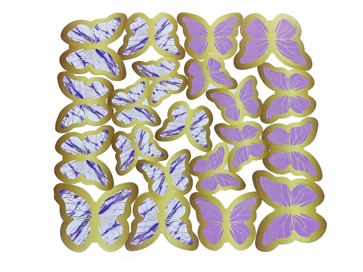 Sticker Plastik Kelebek 21li Çift Taraflı Mor-Beyaz