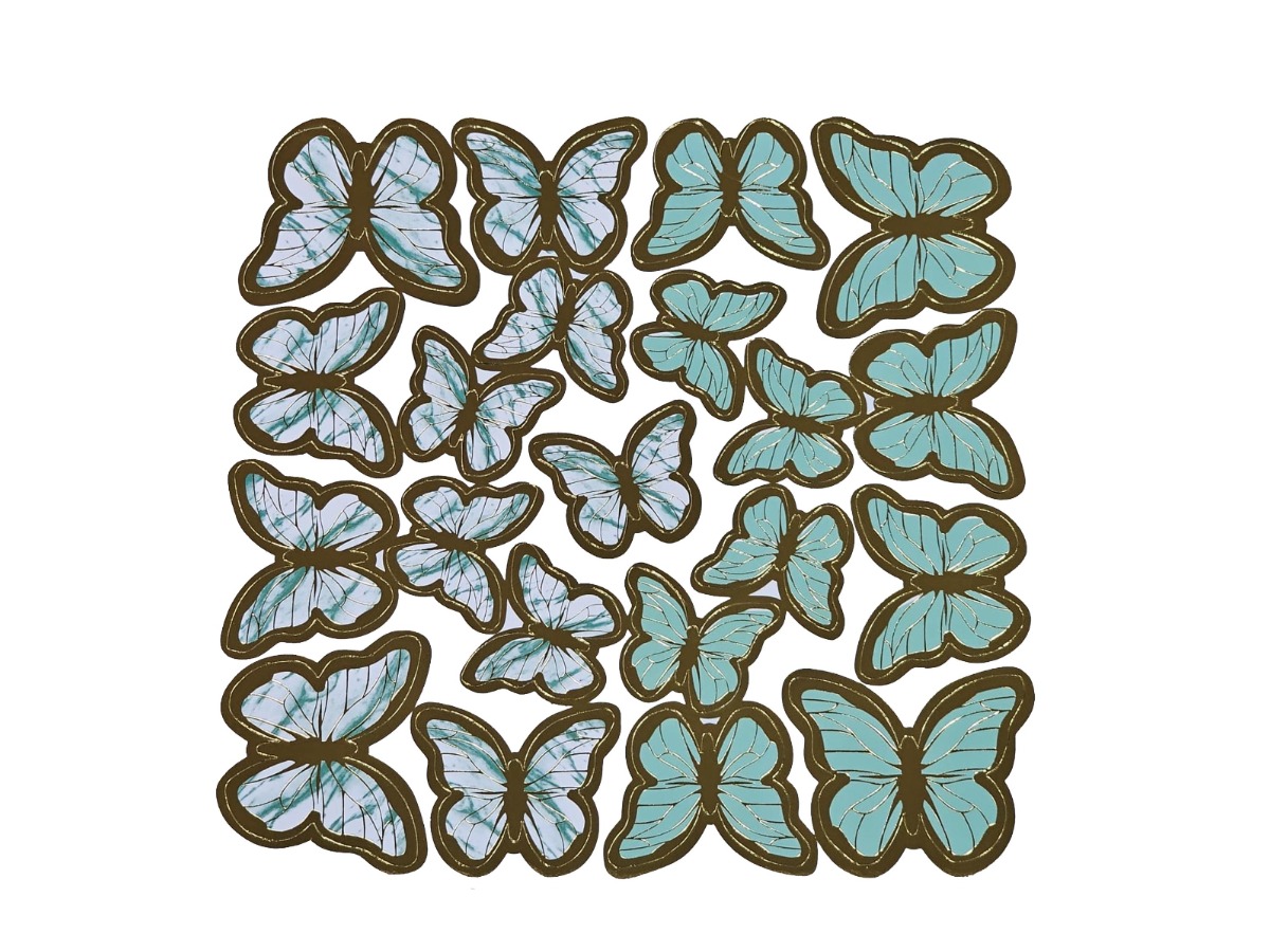 Sticker Plastik Kelebek 21li Çift Taraflı Su Yeşili-Beyaz