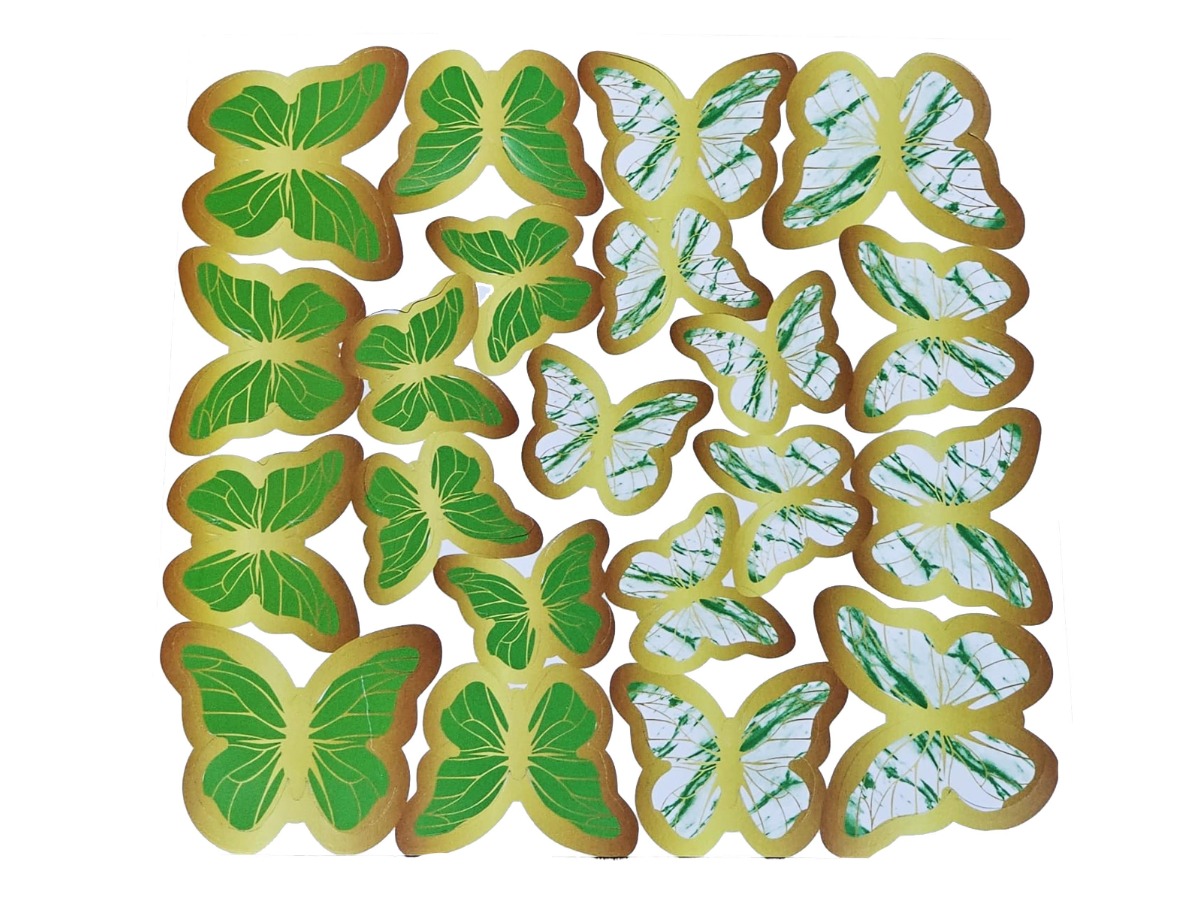 Sticker Plastik Kelebek 21li Çift Taraflı Yeşil-Beyaz