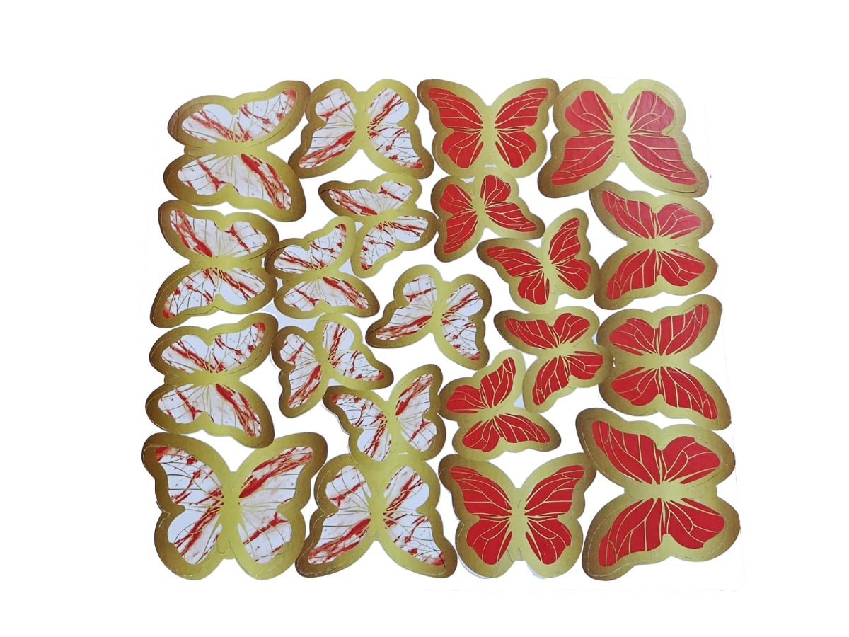 Sticker Plastik Kelebek 21li Çift Taraflı Kırmızı-Beyaz